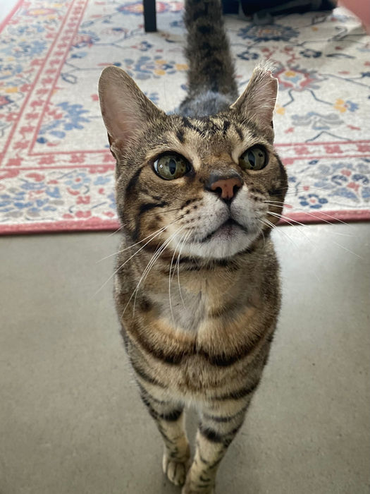 Allô, moi c'est Obasi ! Je suis maintenant prêt à trouver une famille adoptive ! Je suis un matou de 8 ans qui adore se faire flatter. En bon Bengal croisé, je suis très actif et vocal. Si je veux quelque chose, je vais te le dire.